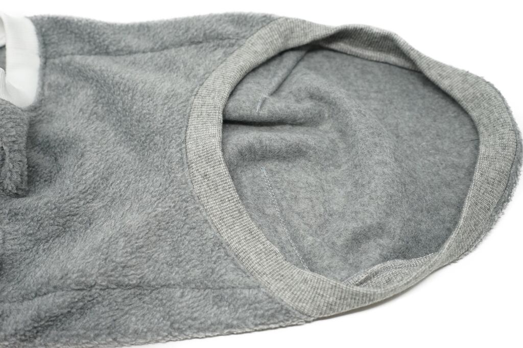 伸縮性のあるフリース生地と襟部分にダークブラウンボーダーのニットを組み合わせたタンクトップです。